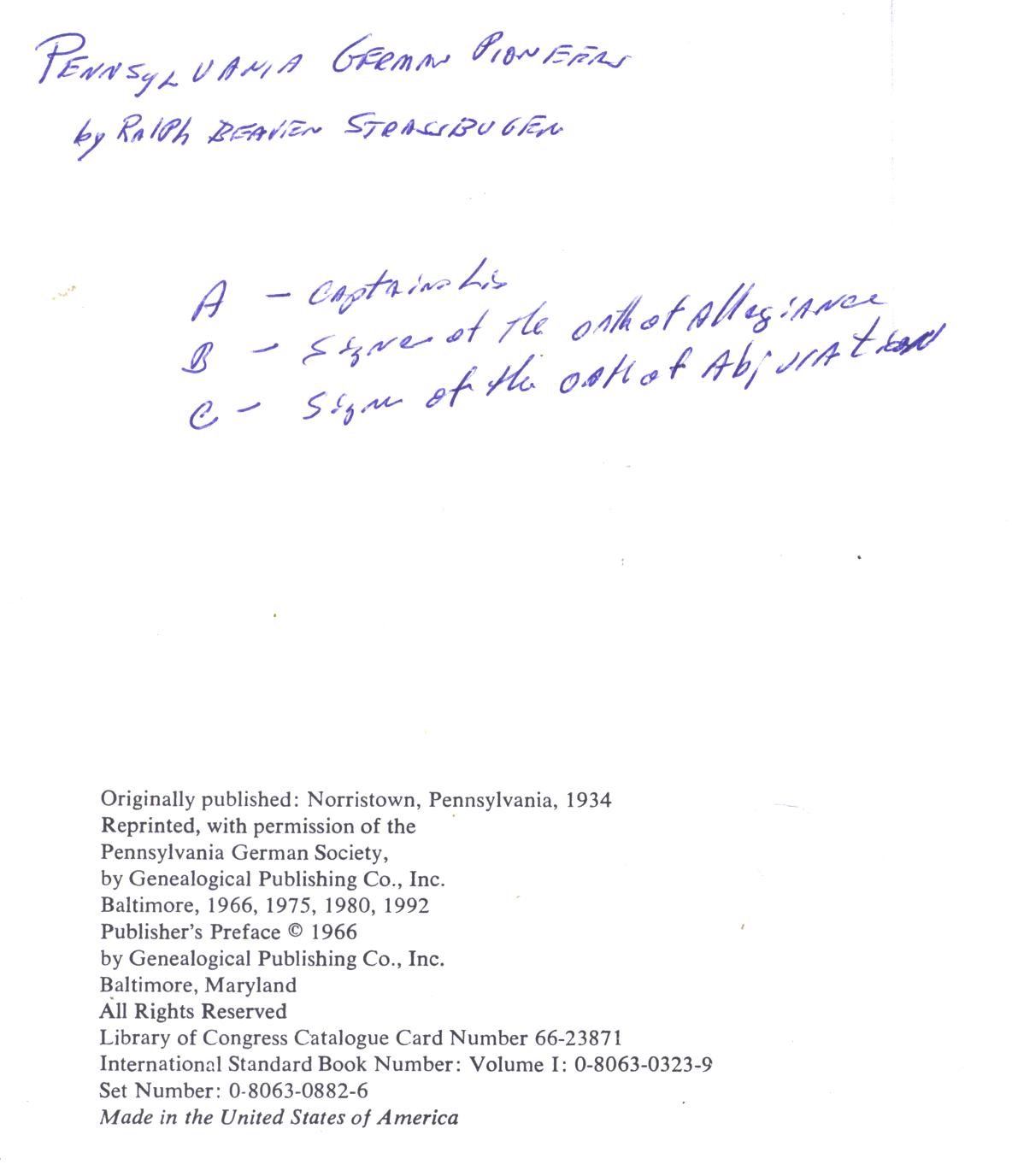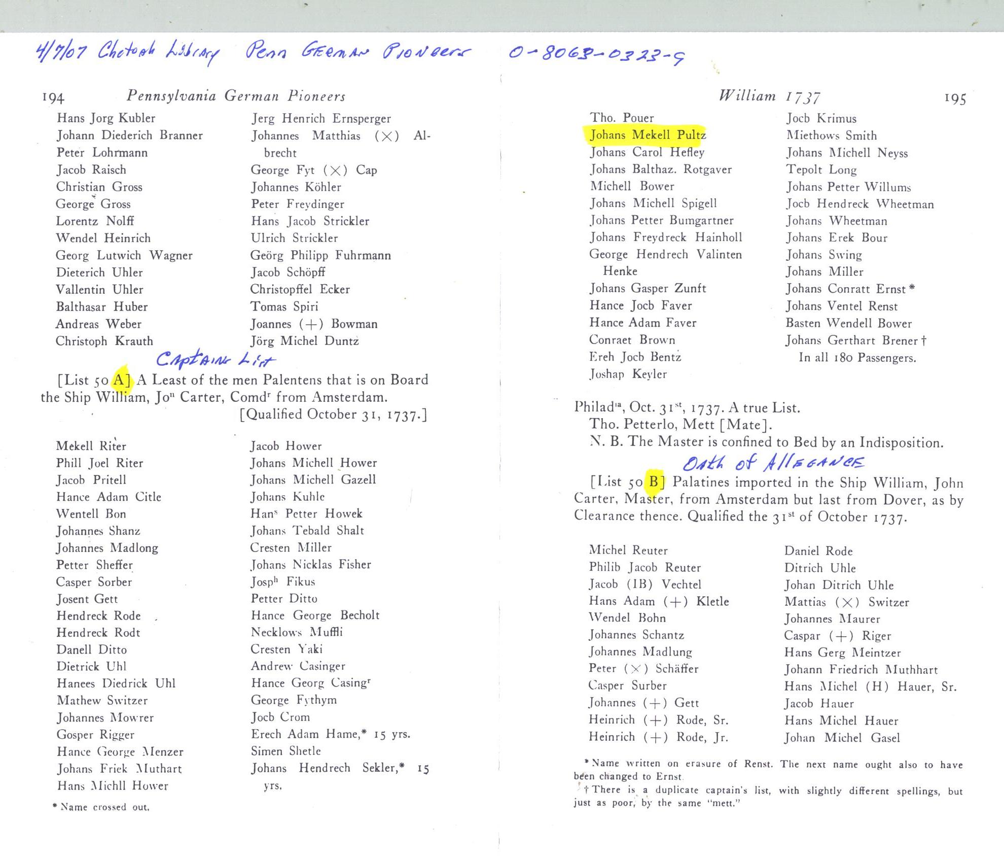 Source Signature(8th down?) +1 List 50A -Johans Mekell Pultz List 50B - Johann Michael Boltz List 50C - Johannes Michael Boltz |
