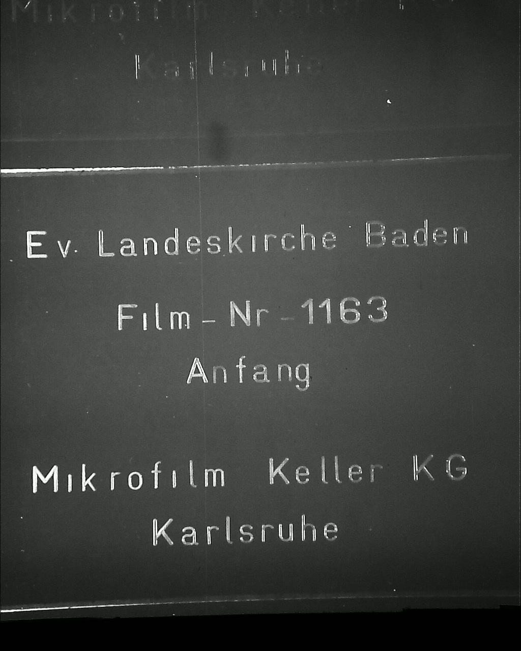 Ev. Church Badenj film No 1163 beginning microfilm basement KC Karlsruhe |