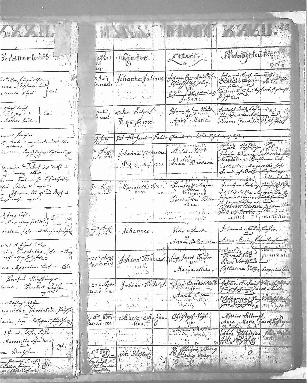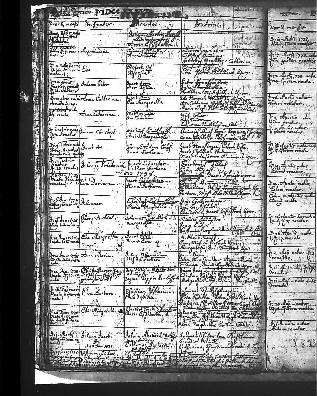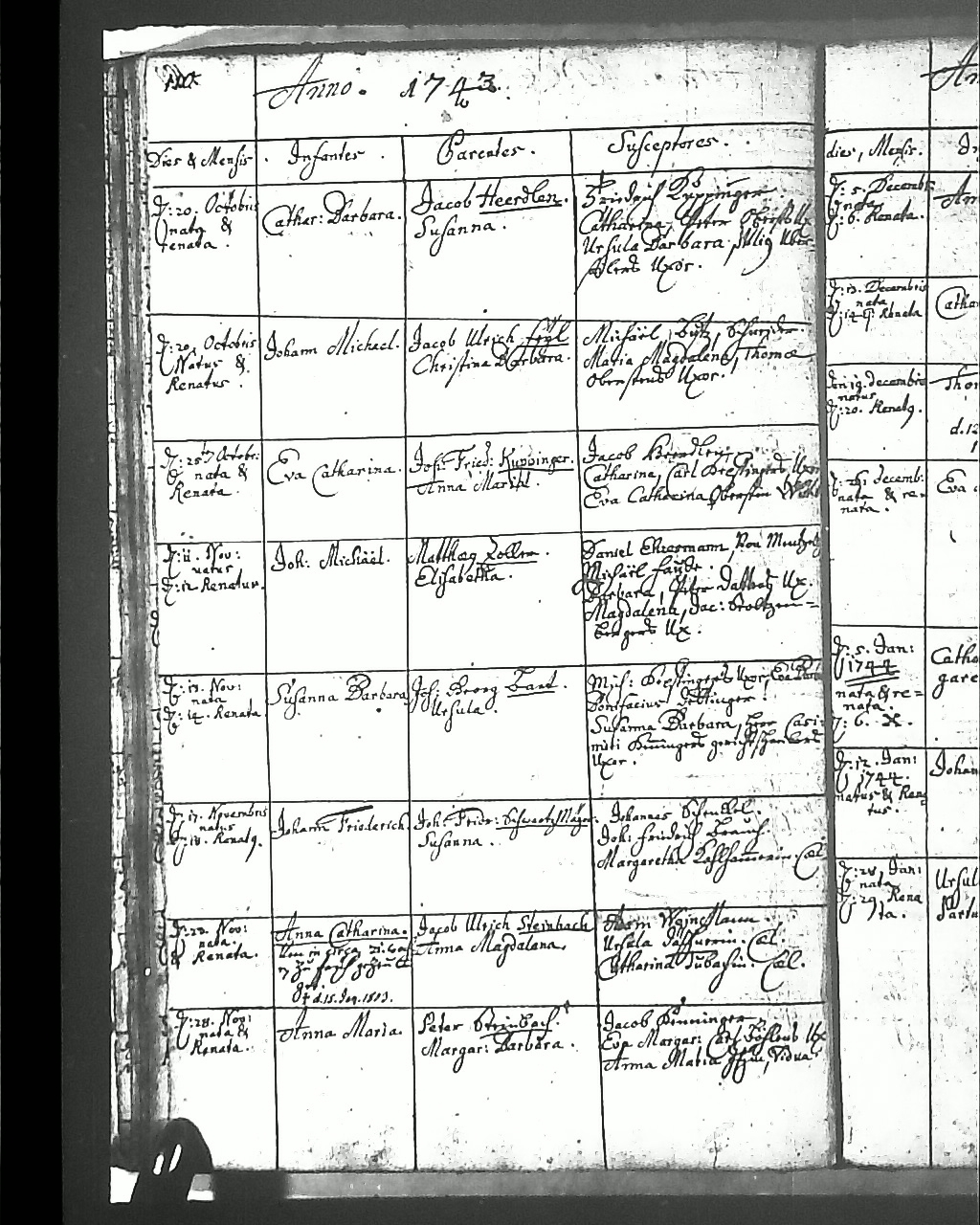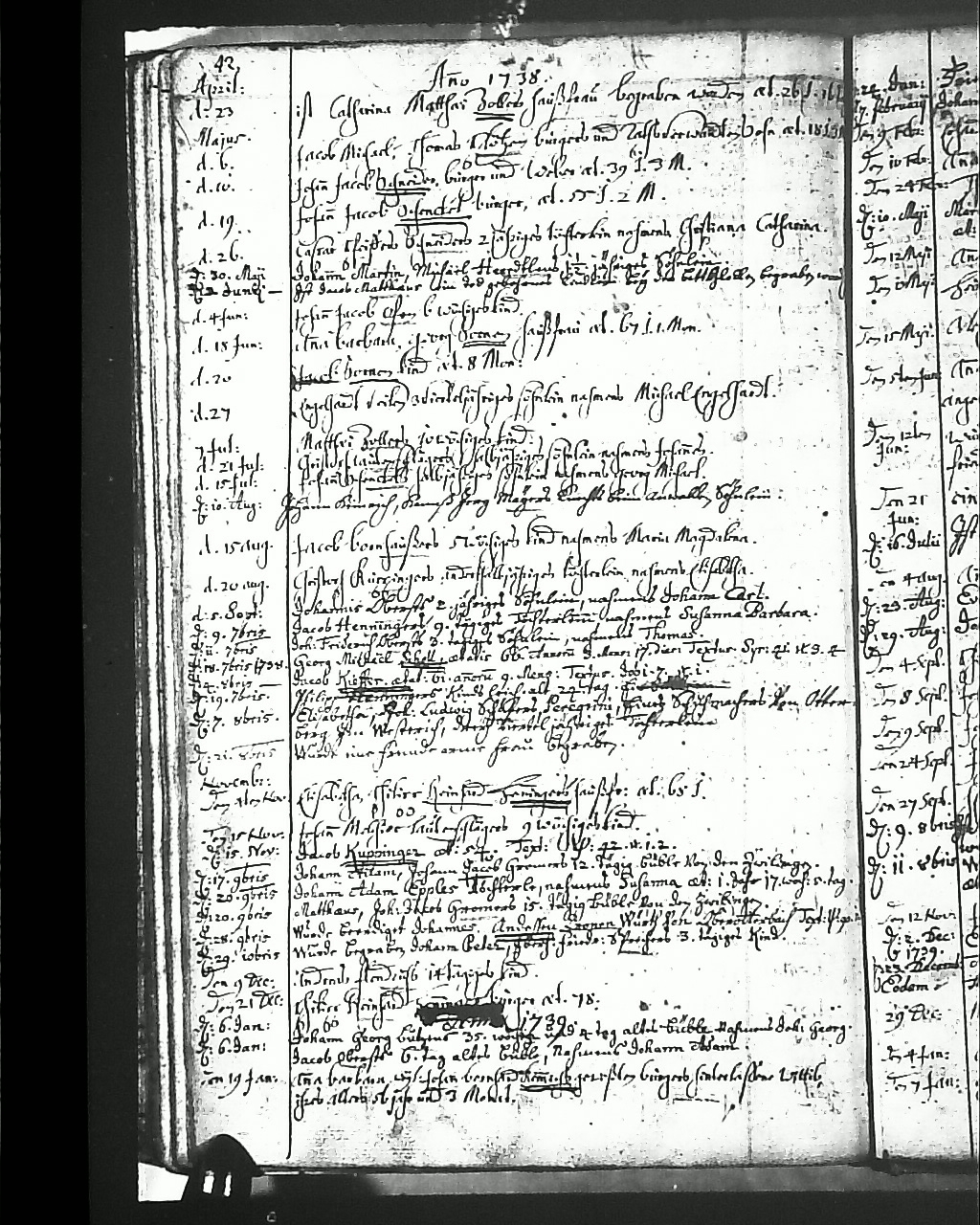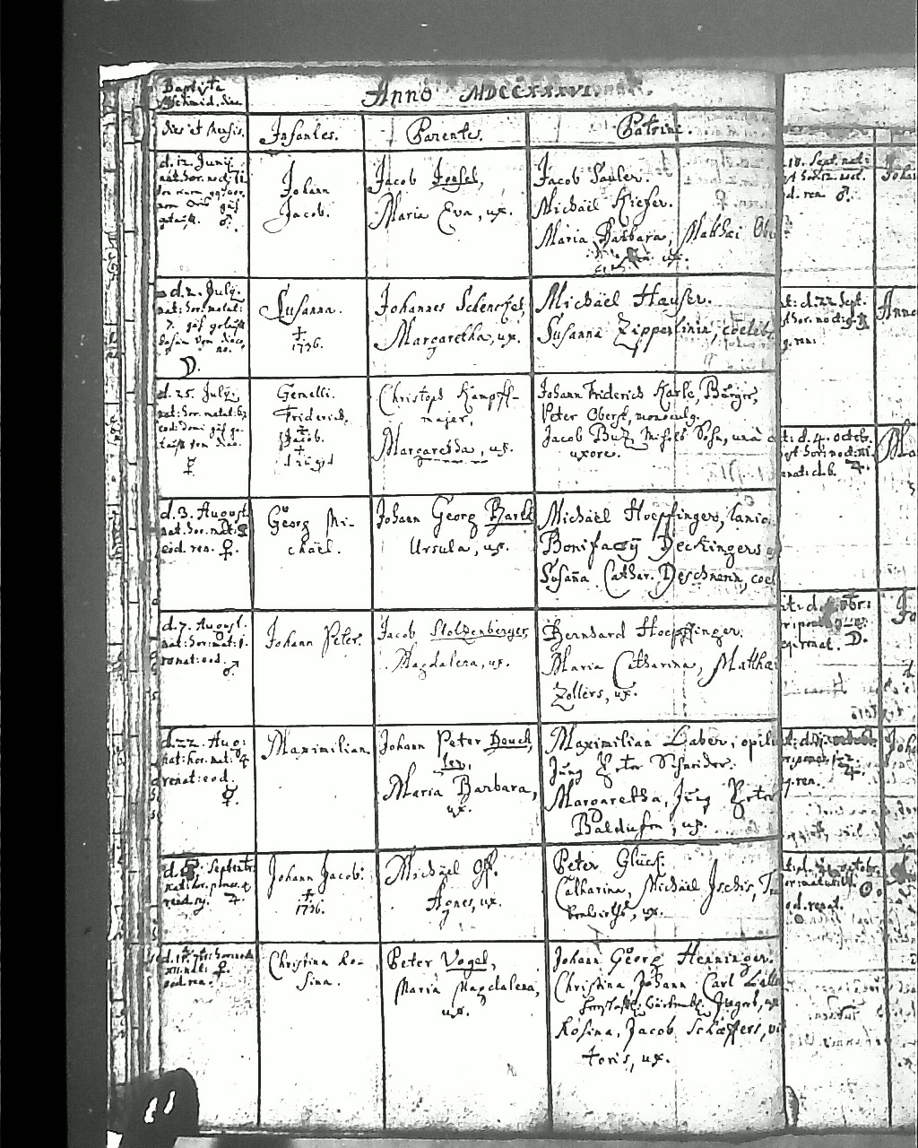 6 February; Christening: John Jacob died 1732; Parents: Jacob Boltz; Magualena; sponsors: Mathew Zoller + 2 more