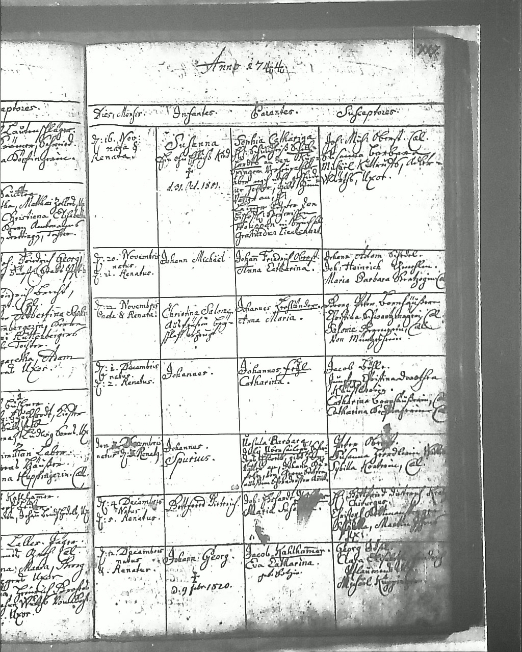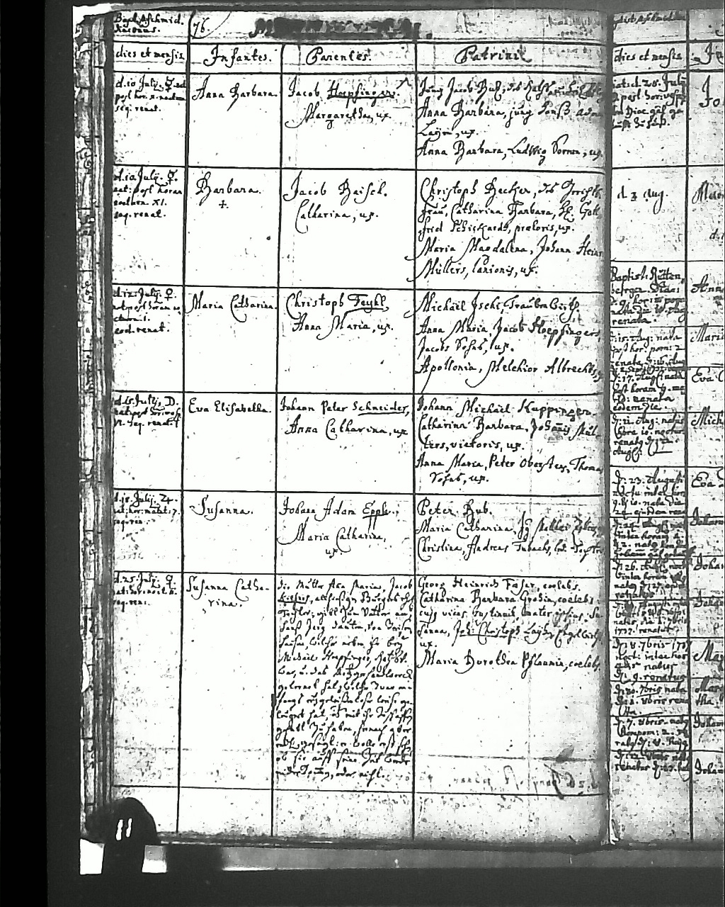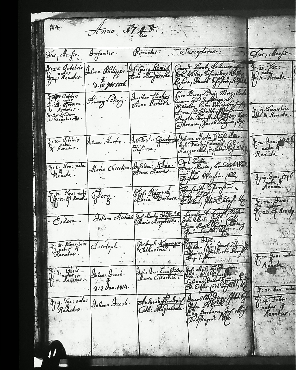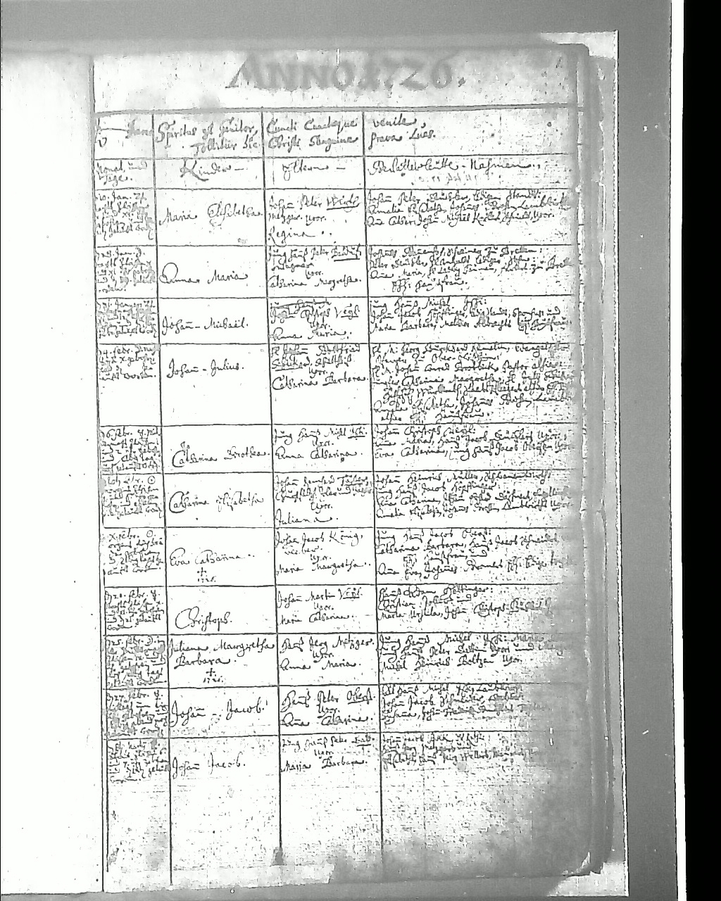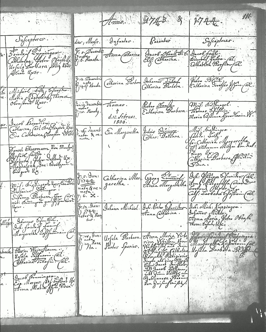 6 February; Christening: John Jacob died 1732; Parents: Jacob Boltz; Magualena; sponsors: Mathew Zoller + 2 more