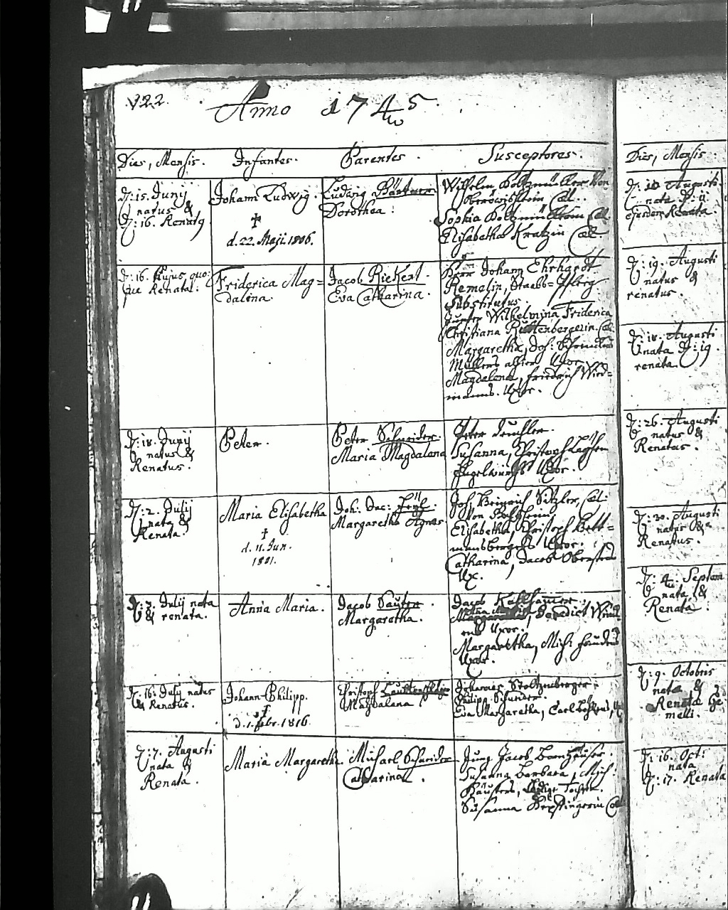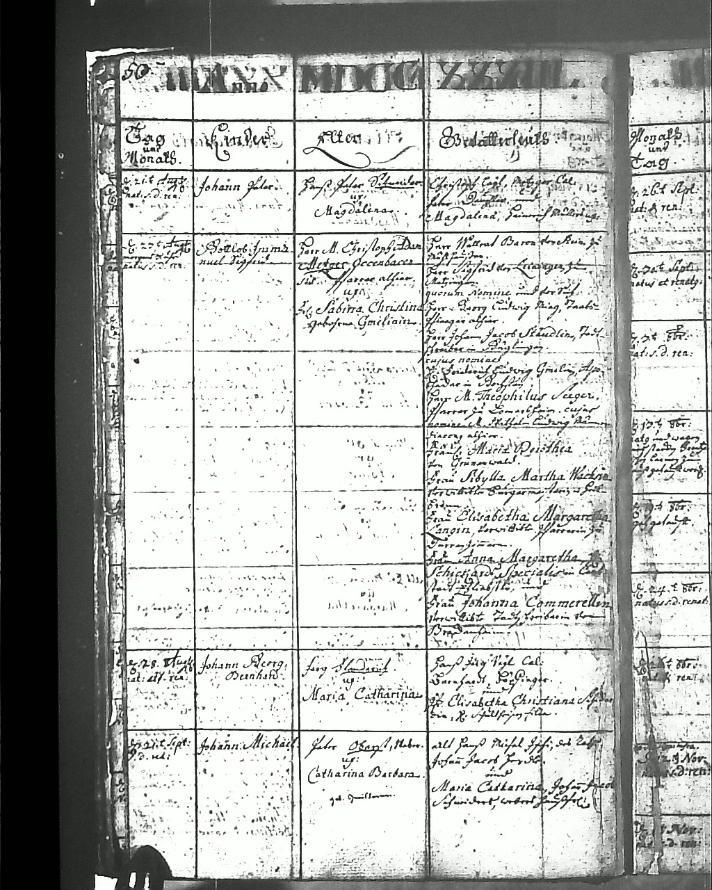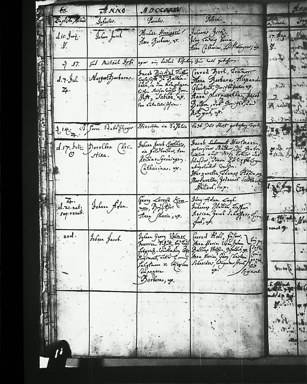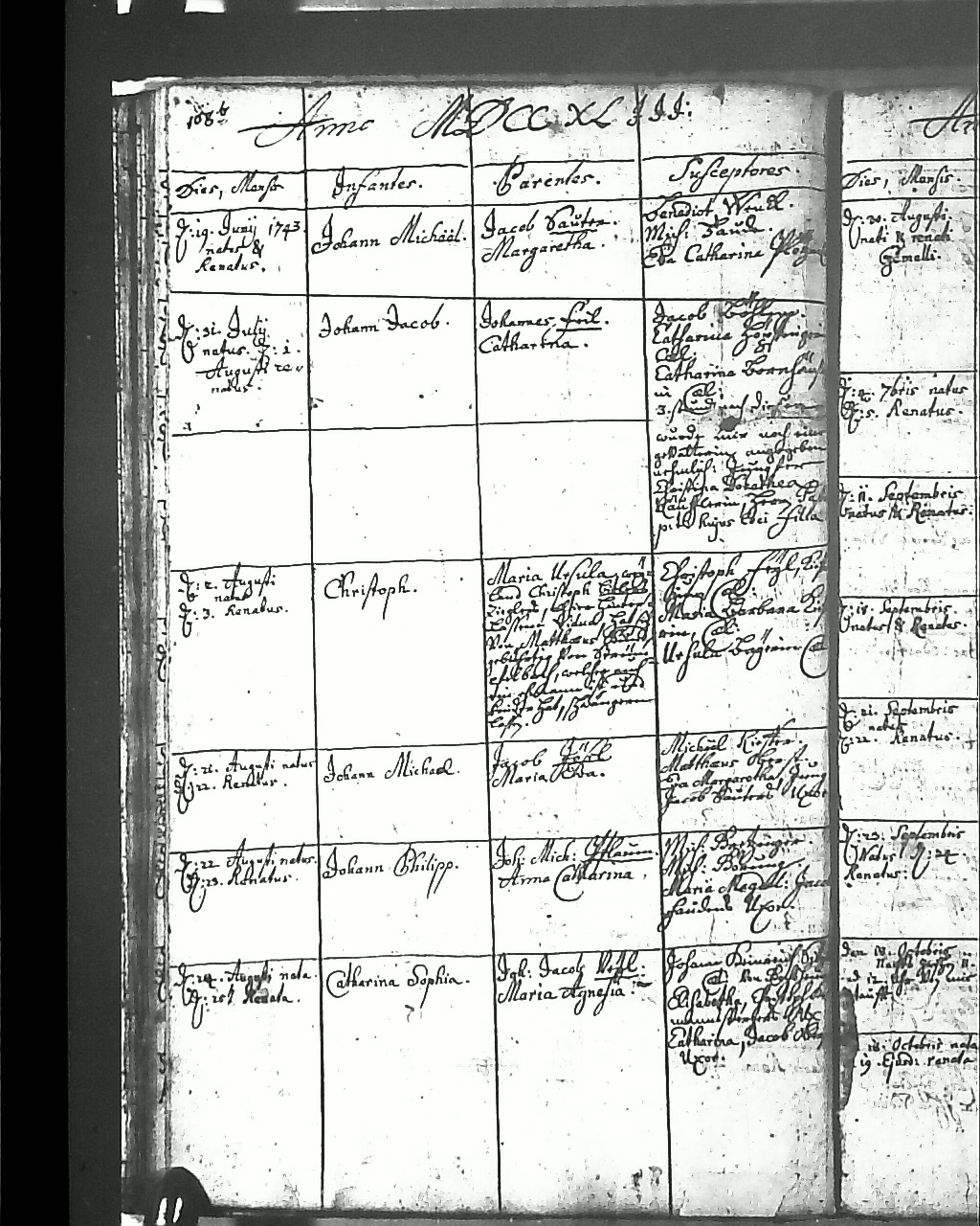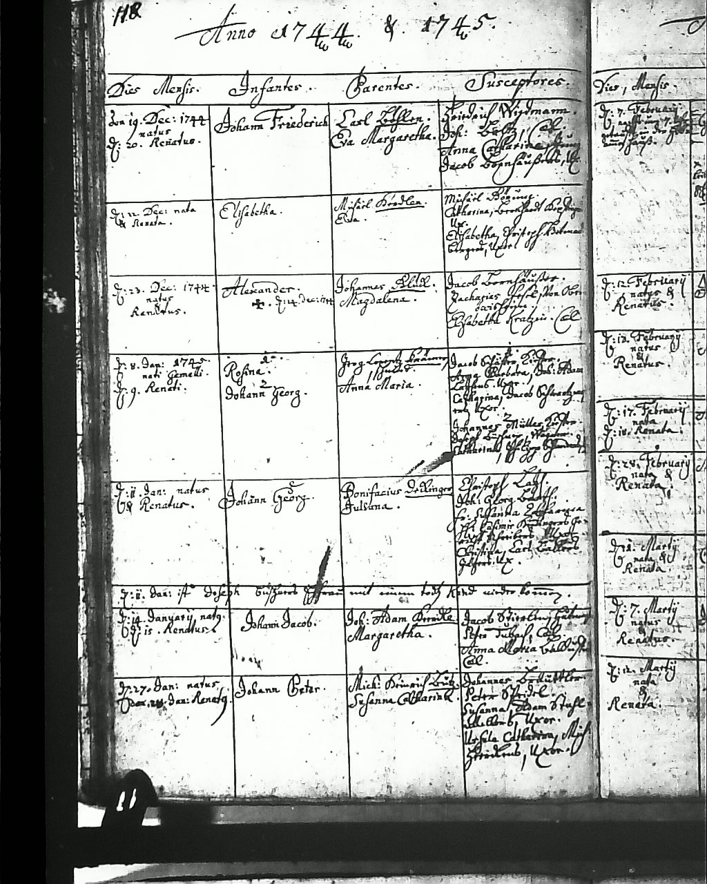 6 February; Christening: John Jacob died 1732; Parents: Jacob Boltz; Magualena; sponsors: Mathew Zoller + 2 more