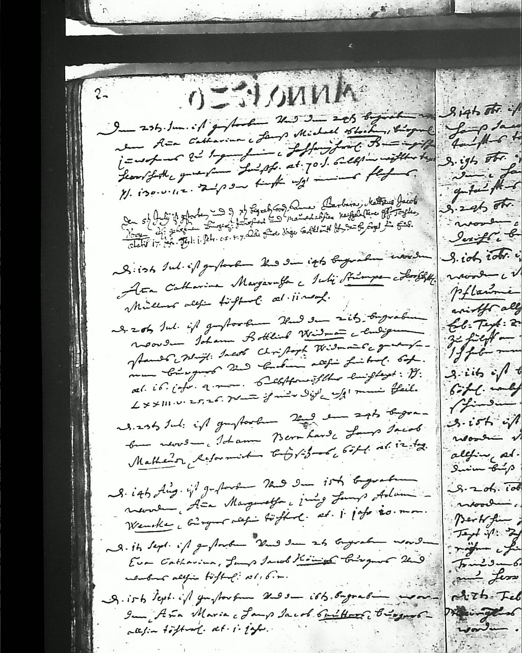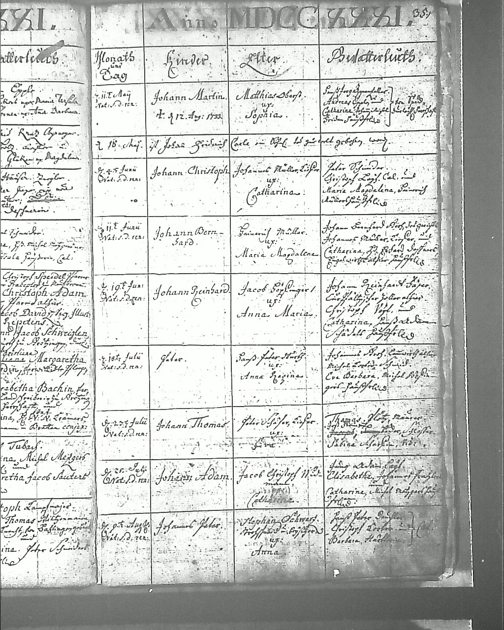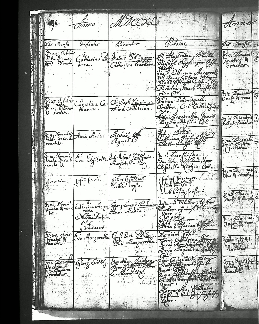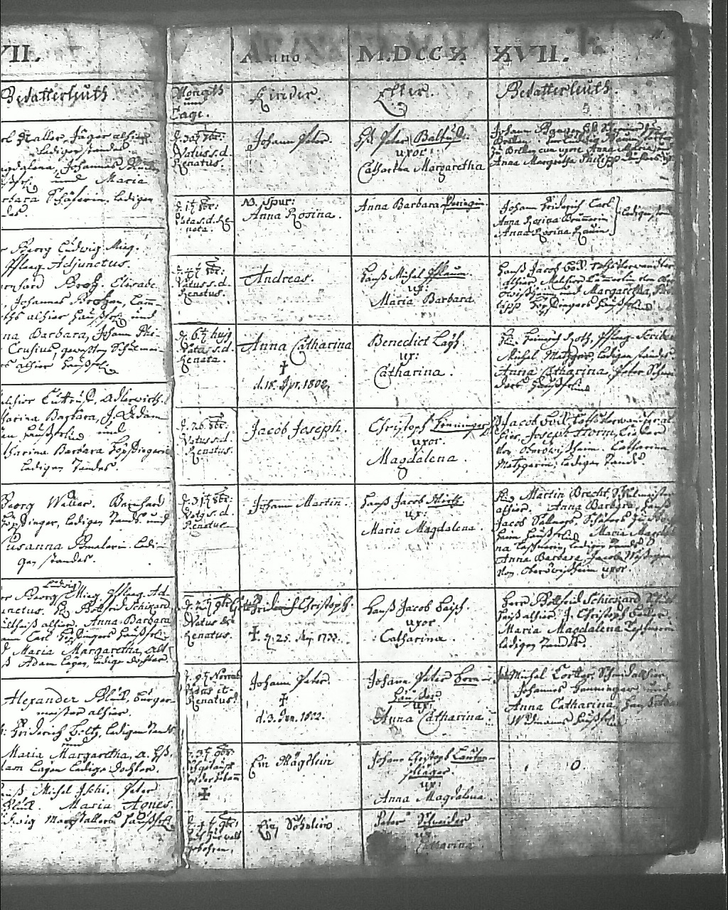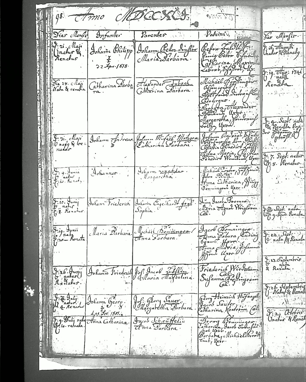6 February; Christening: John Jacob died 1732; Parents: Jacob Boltz; Magualena; sponsors: Mathew Zoller + 2 more