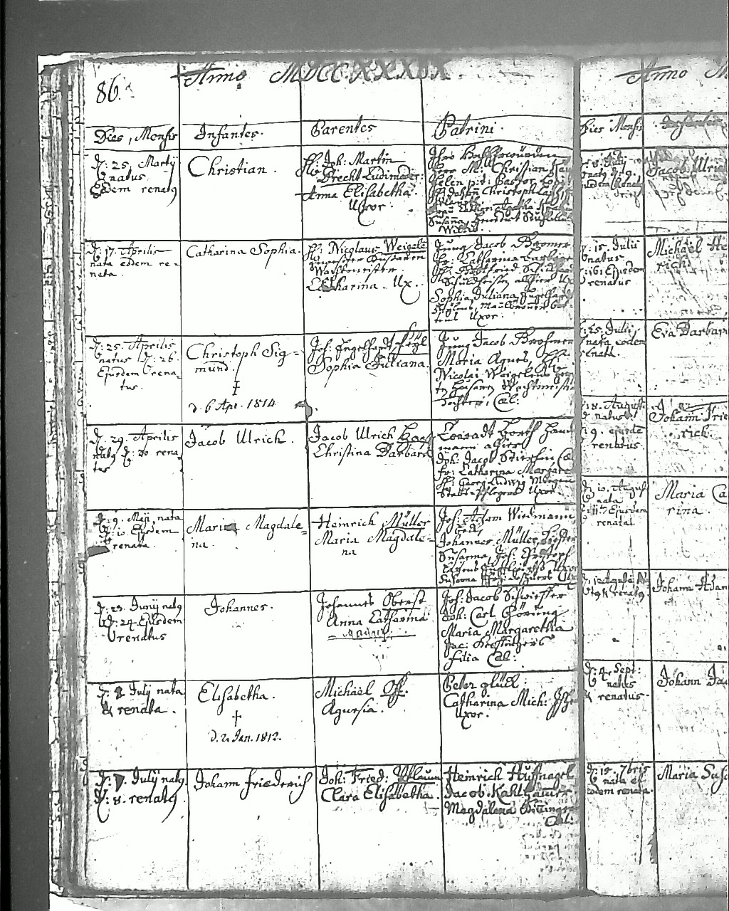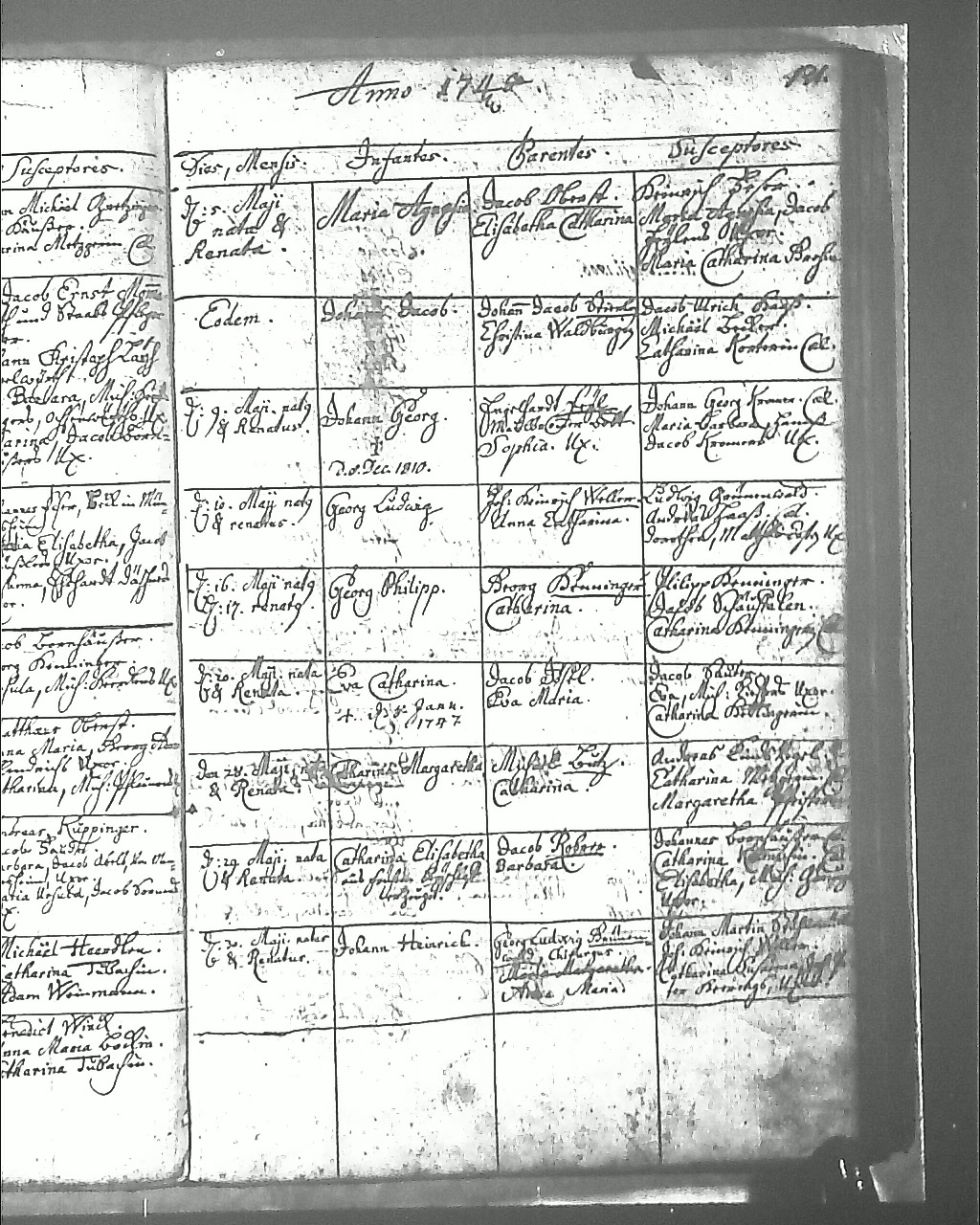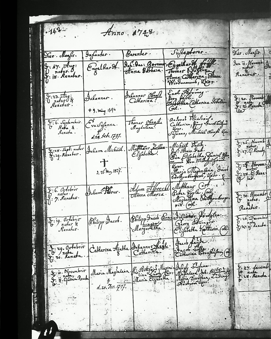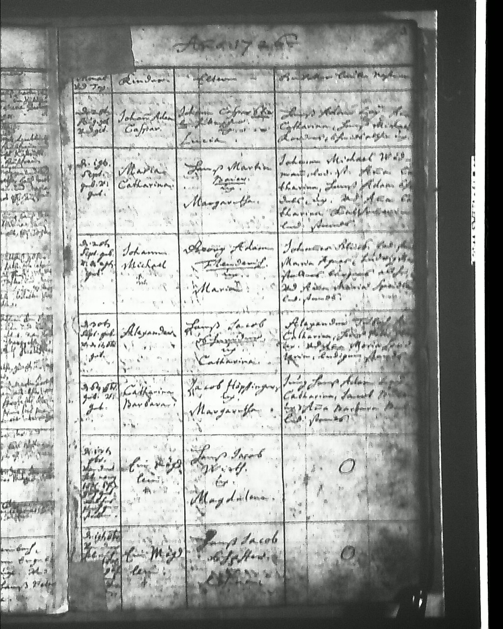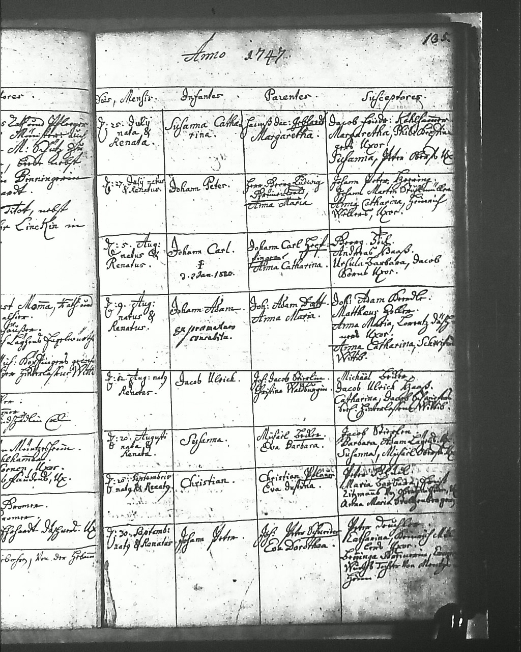 6 February; Christening: John Jacob died 1732; Parents: Jacob Boltz; Magualena; sponsors: Mathew Zoller + 2 more