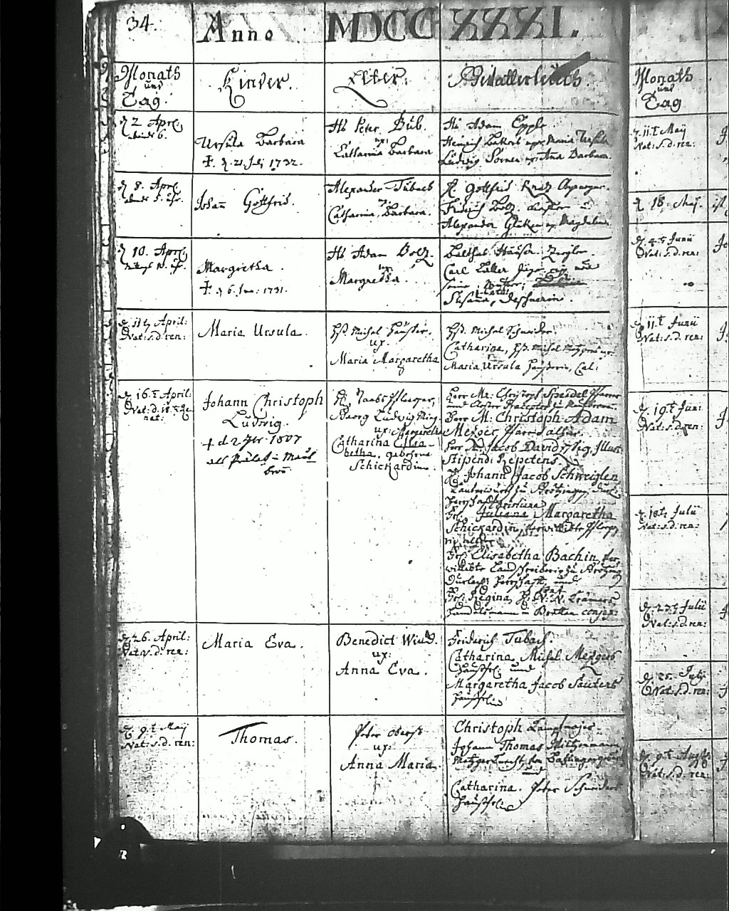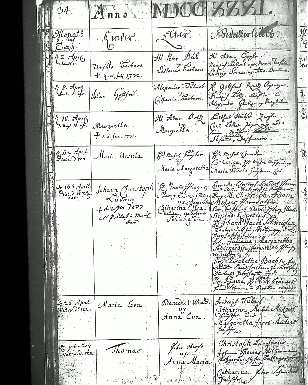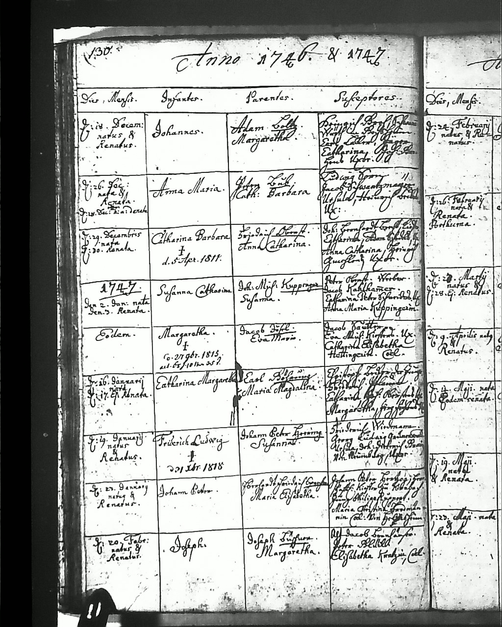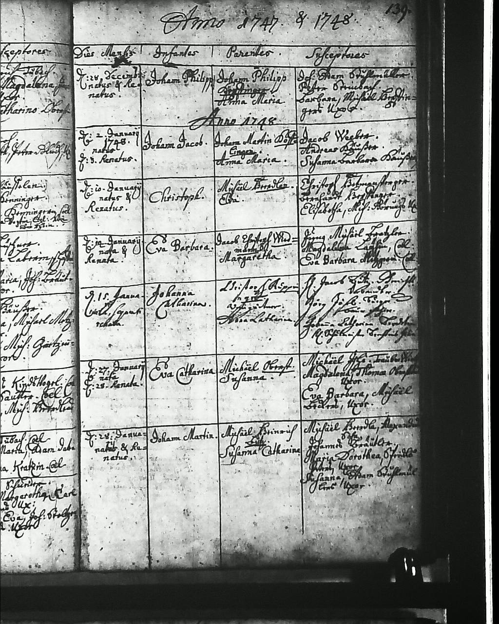 02138 Margretha Barbara Boltz Birth: Jan 1729