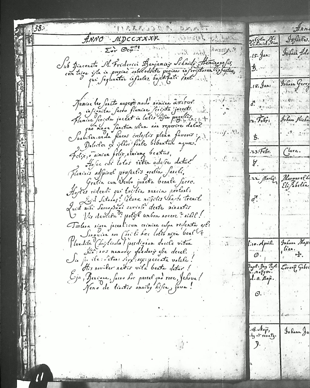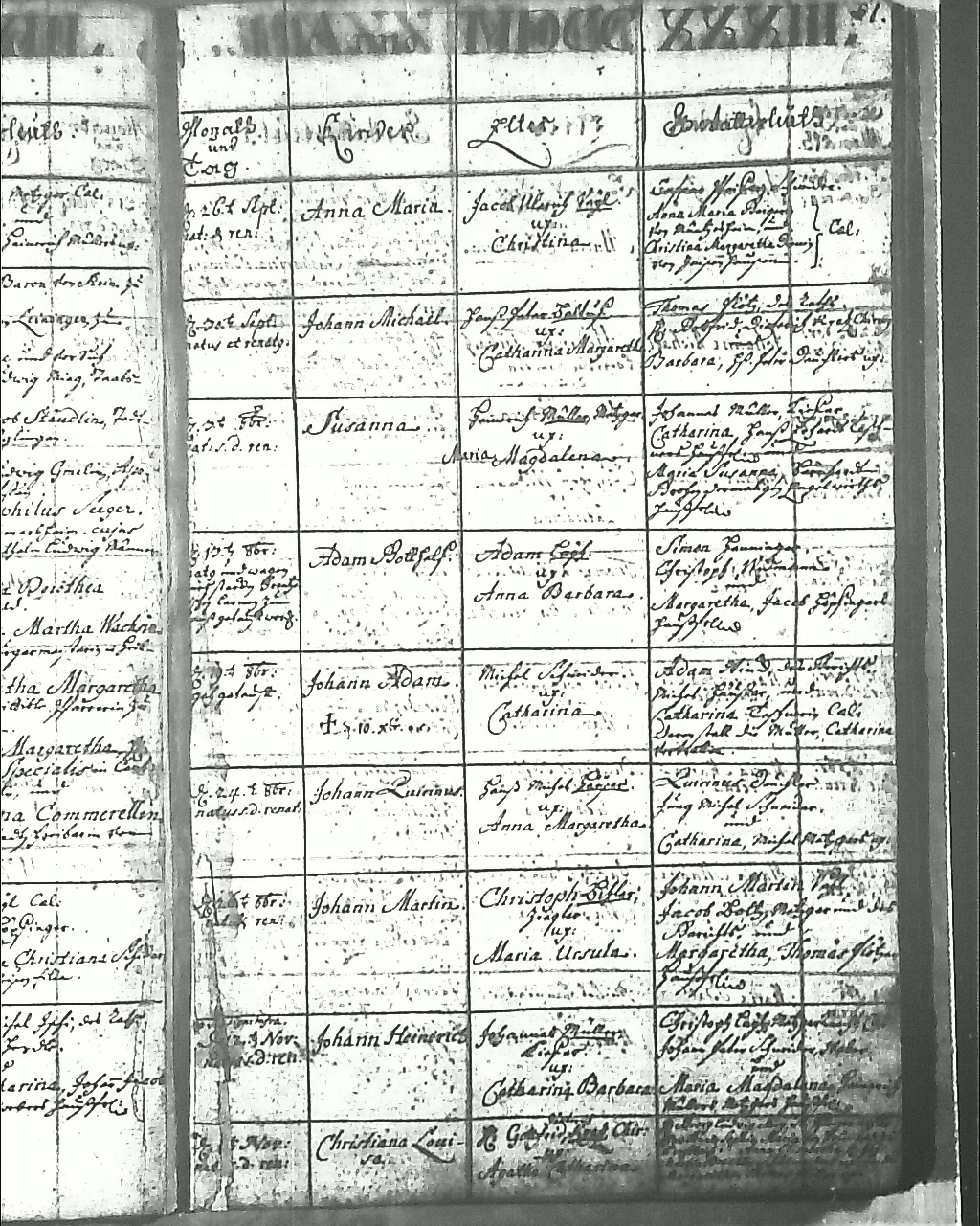 1 January; Christening: Johannis; Parents: Johanian Boltz?; Amalia Elizabeth; sponsors: 7