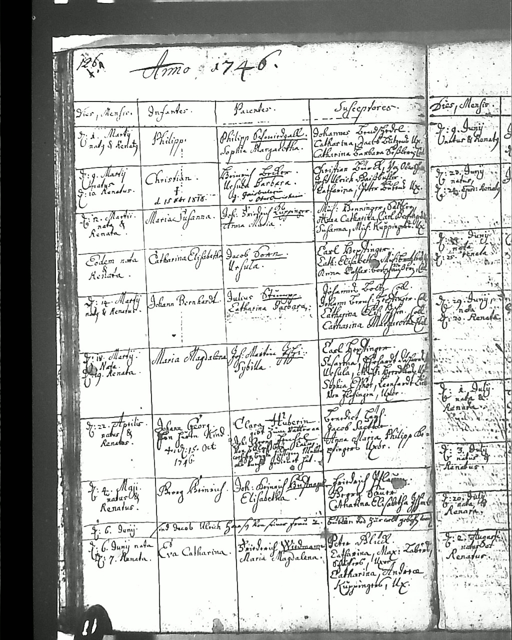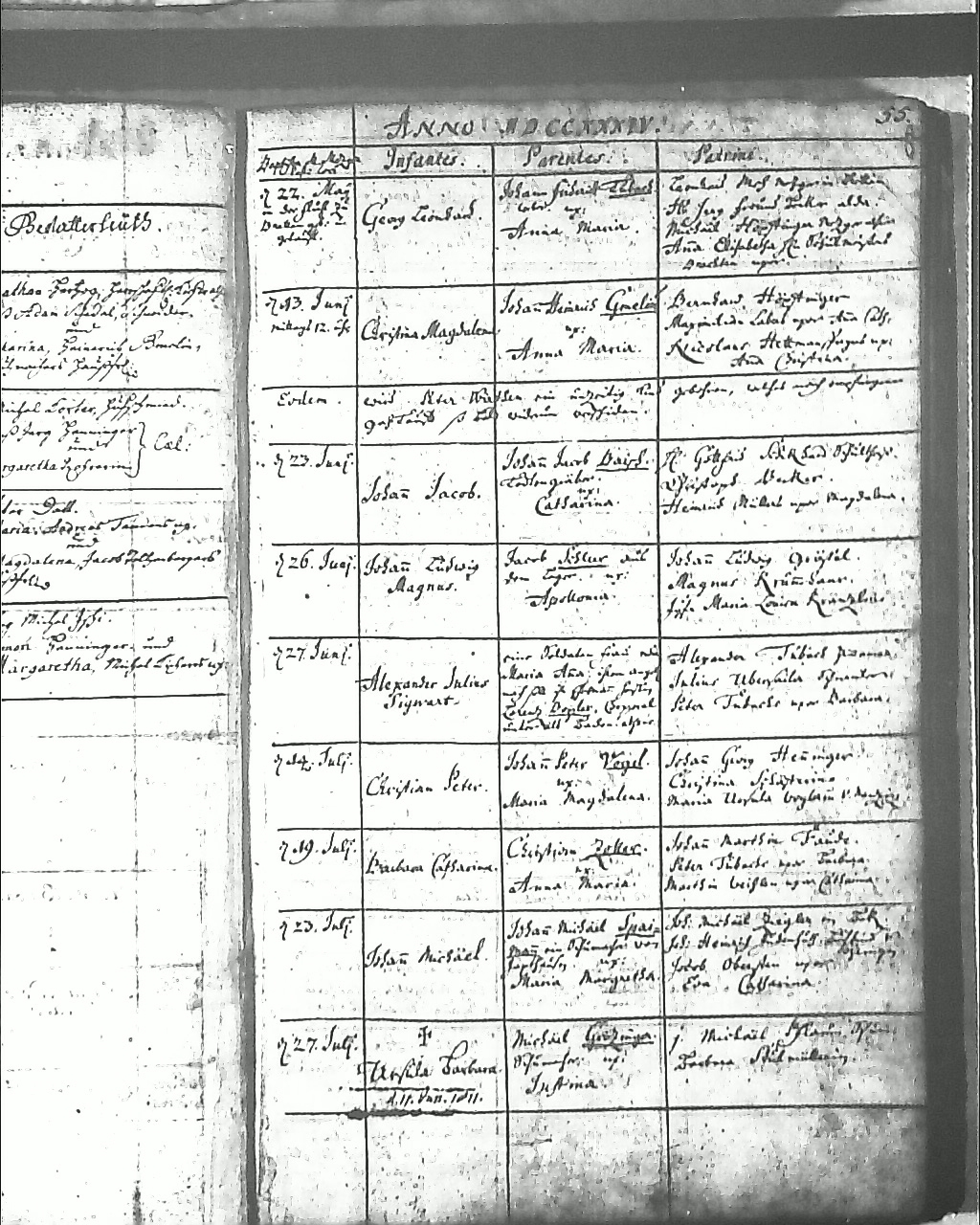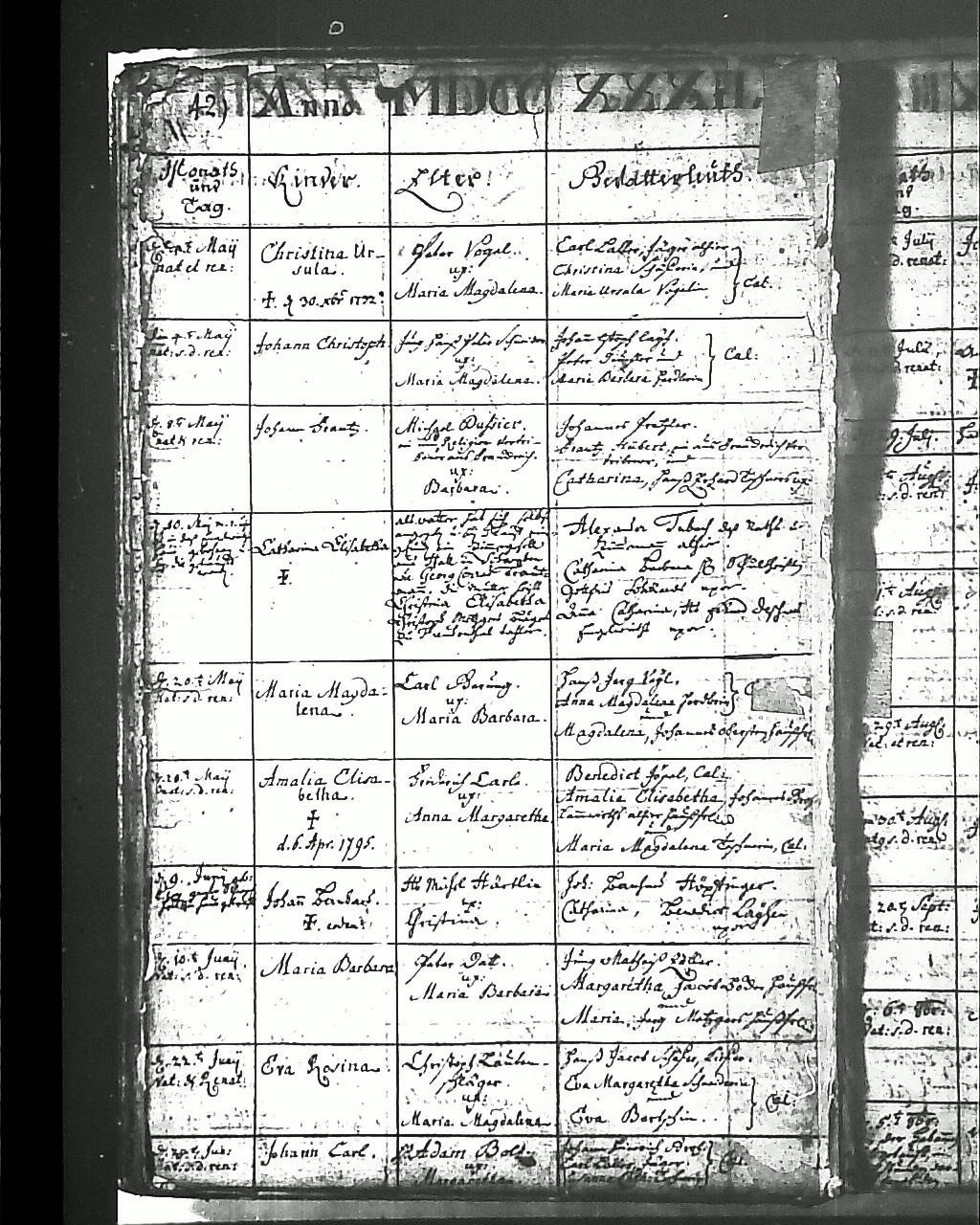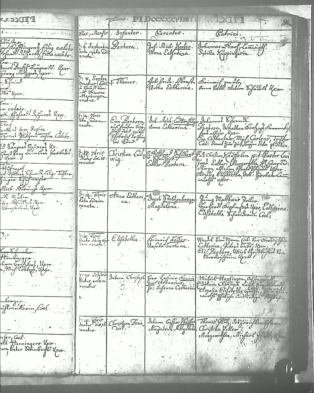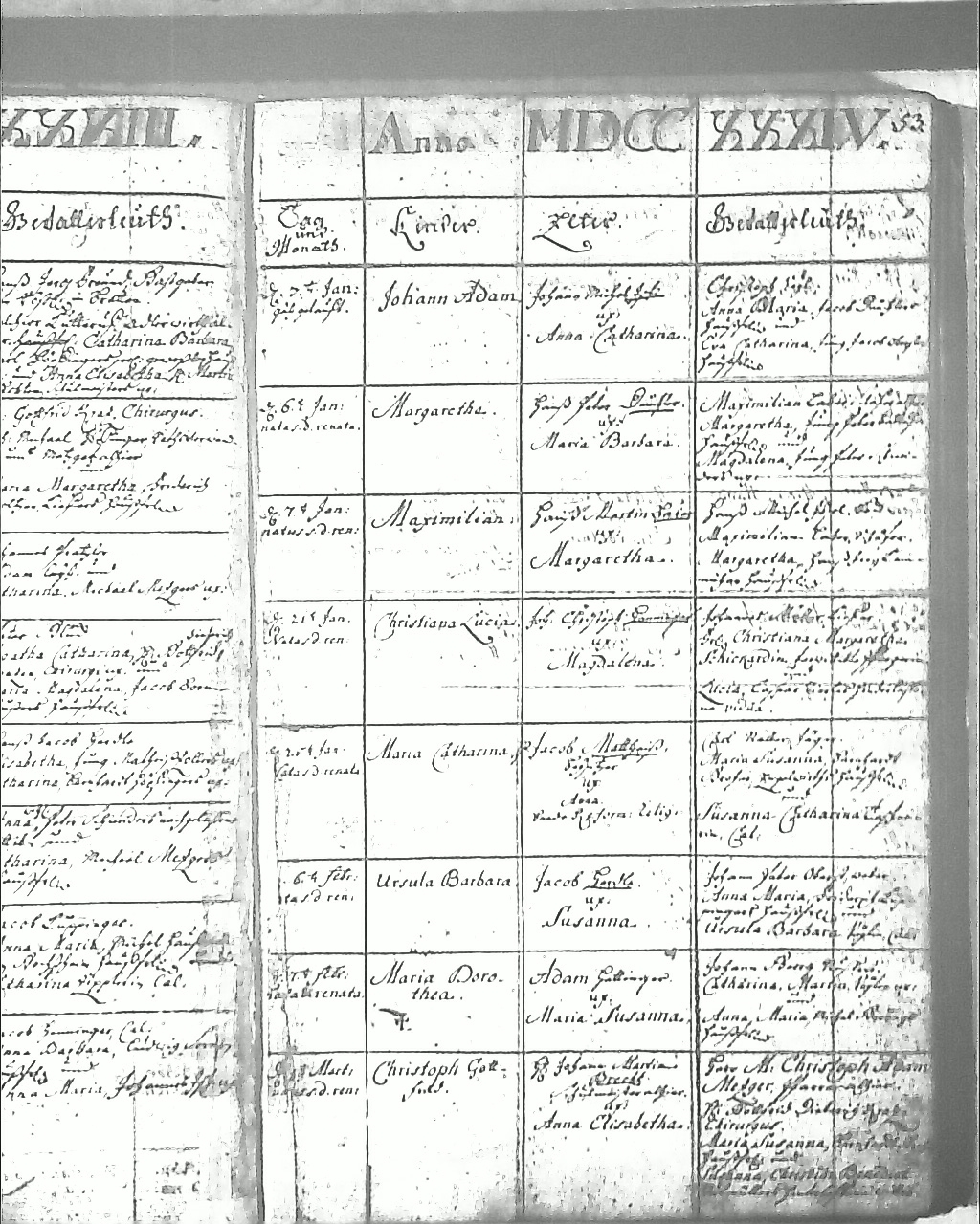 16 February; Christening: Maria Magualena; Parents: Sebastain Gindar Boltz; Anna Maria; sponsors: 3