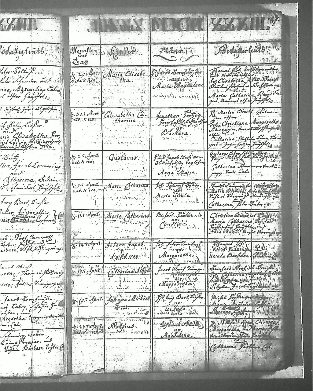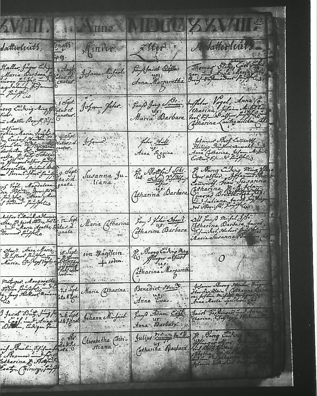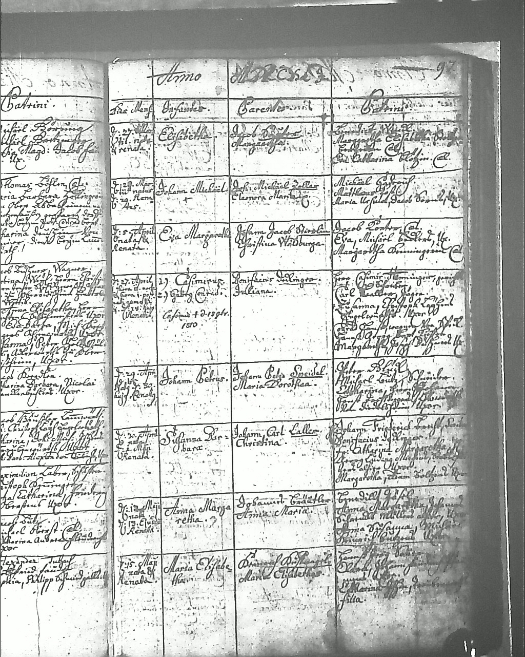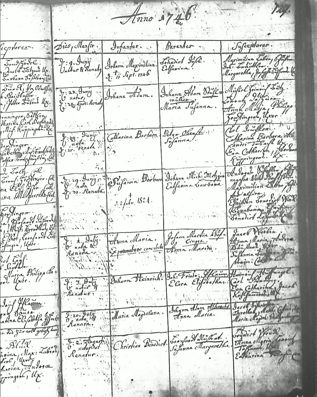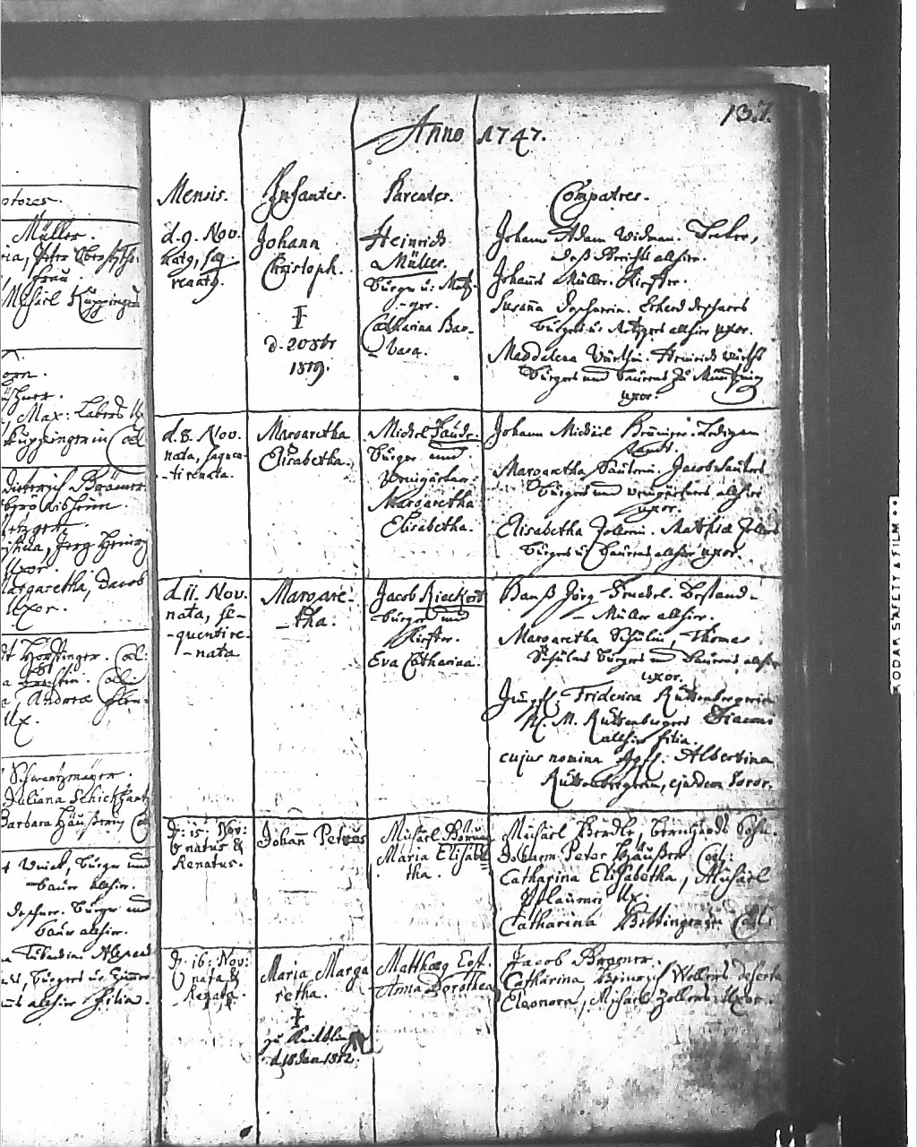 16 February; Christening: Maria Magualena; Parents: Sebastain Gindar Boltz; Anna Maria; sponsors: 3