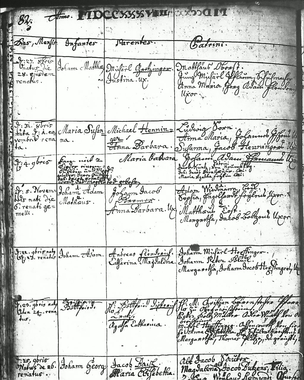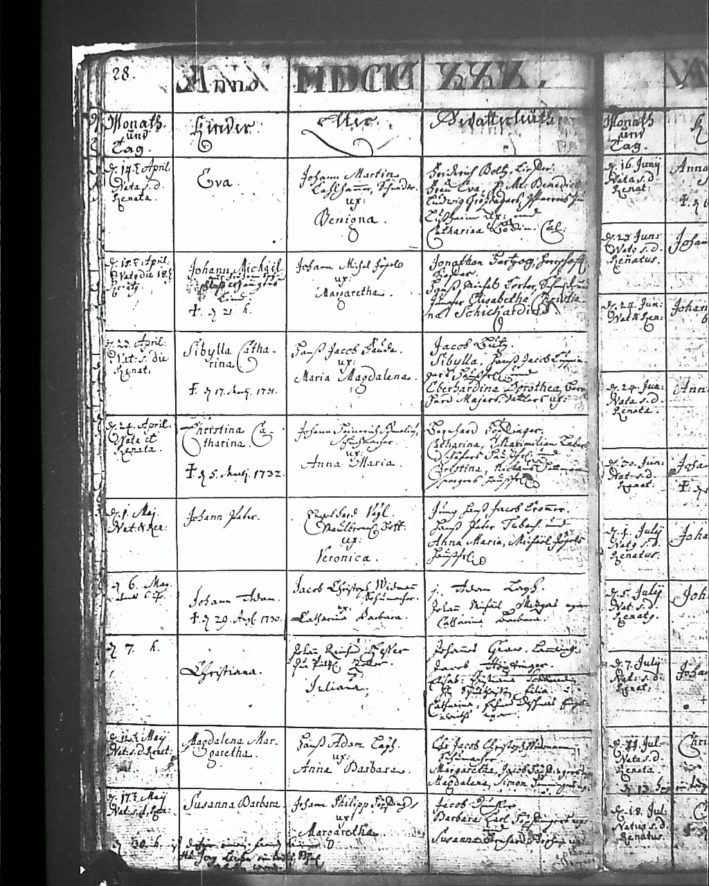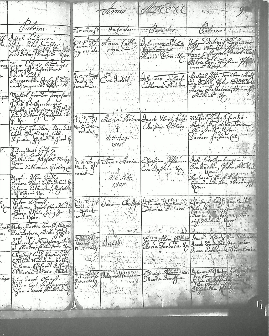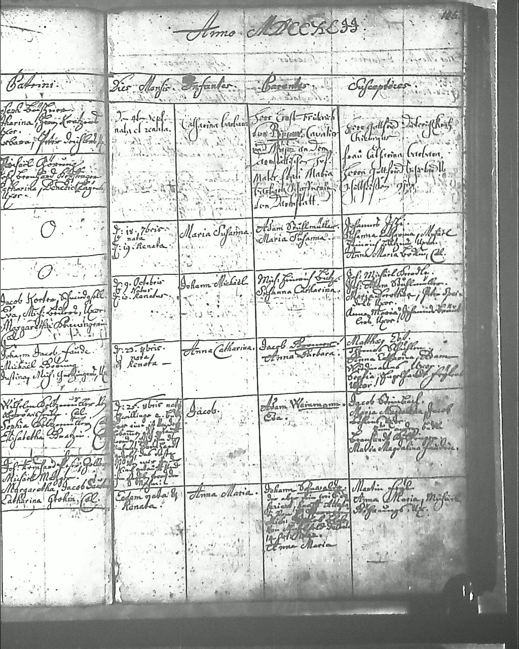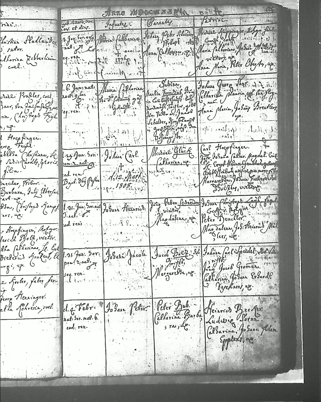 16 February; Christening: Maria Magualena; Parents: Sebastain Gindar Boltz; Anna Maria; sponsors: 3