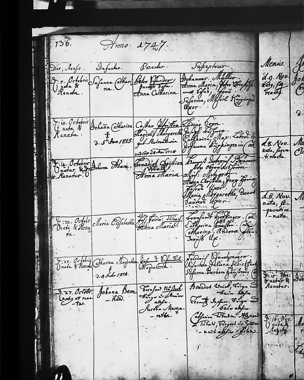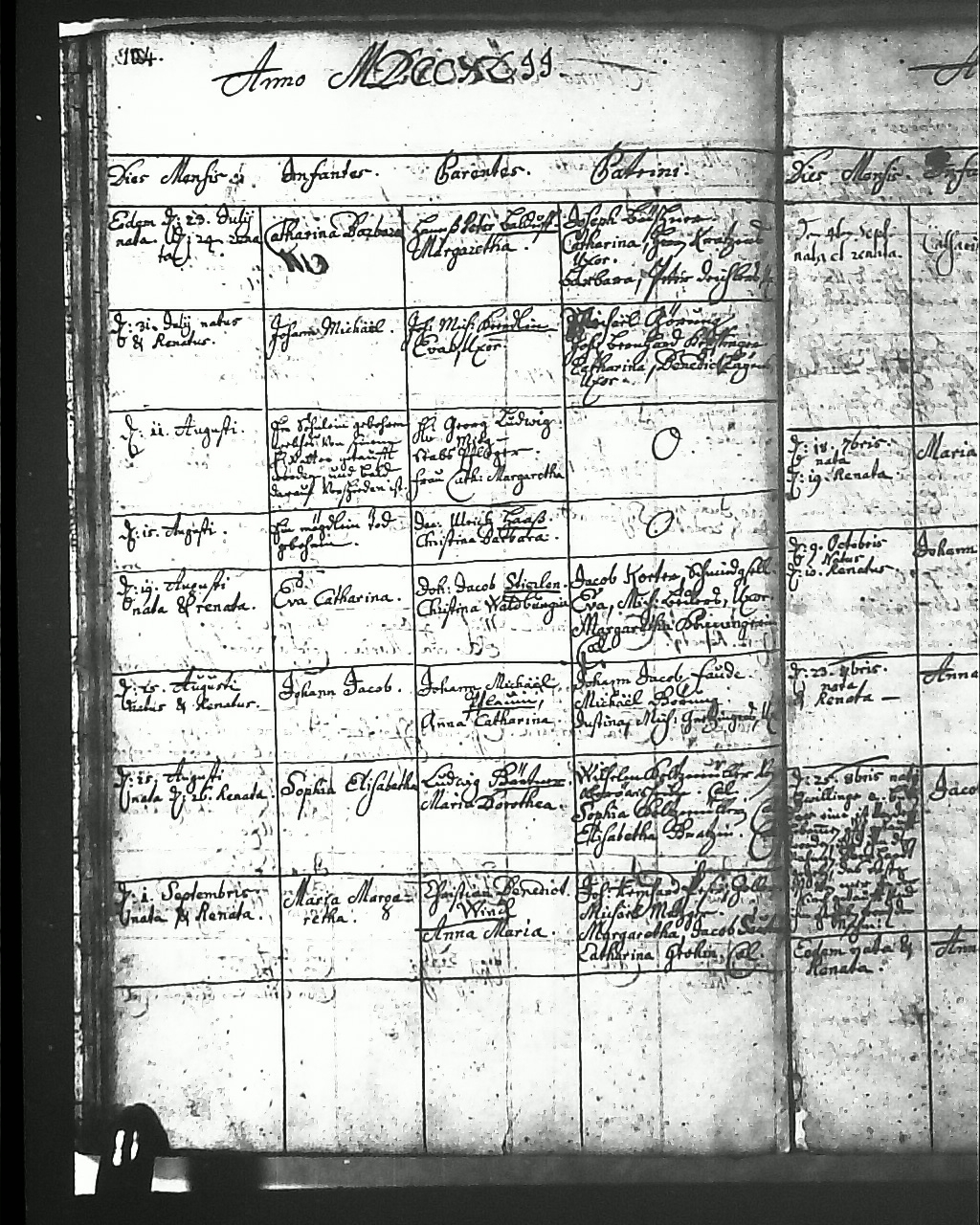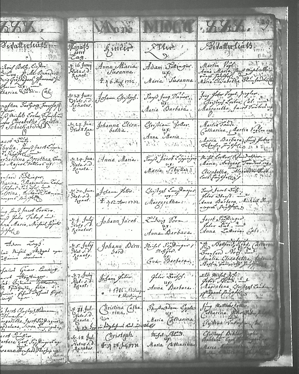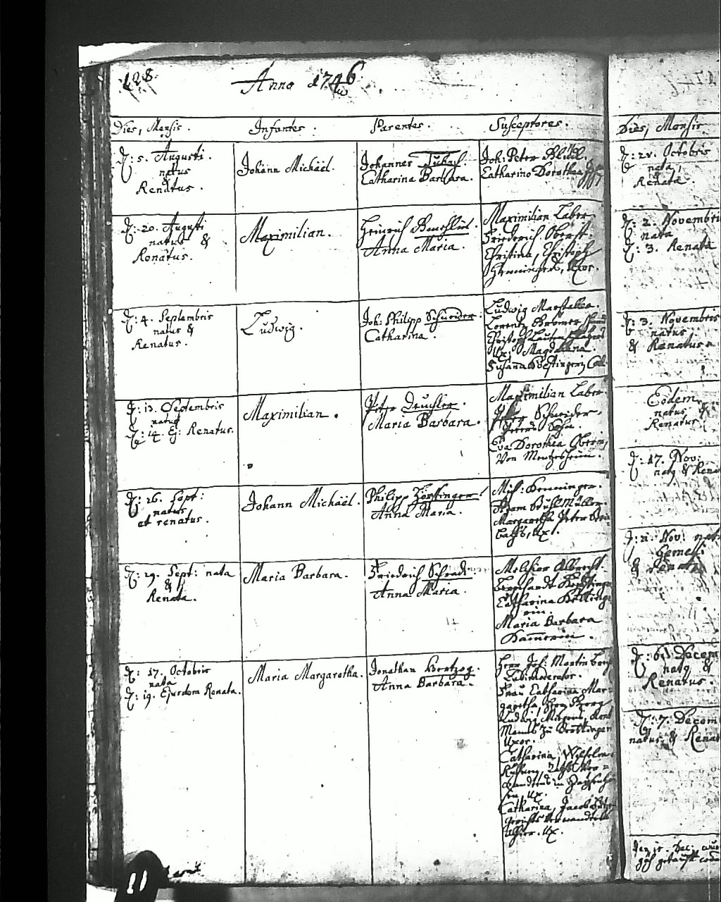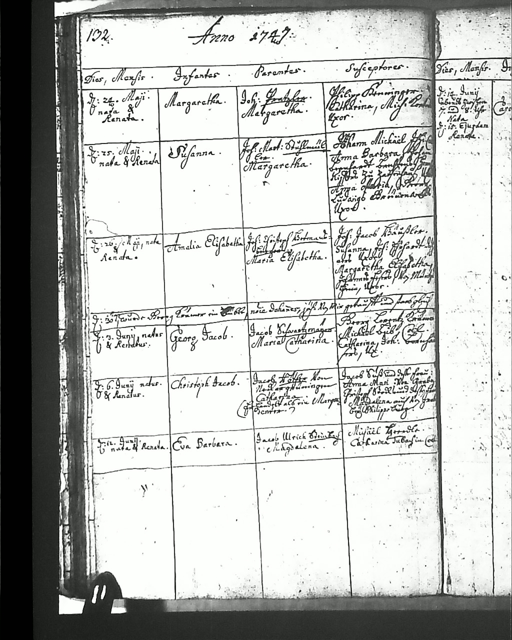16 February; Christening: Maria Magualena; Parents: Sebastain Gindar Boltz; Anna Maria; sponsors: 3