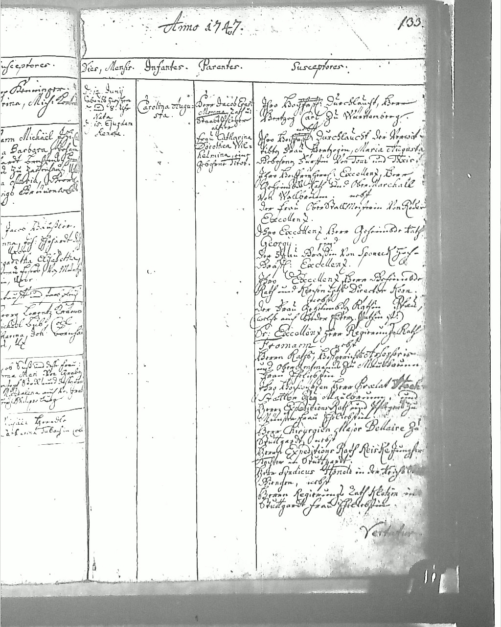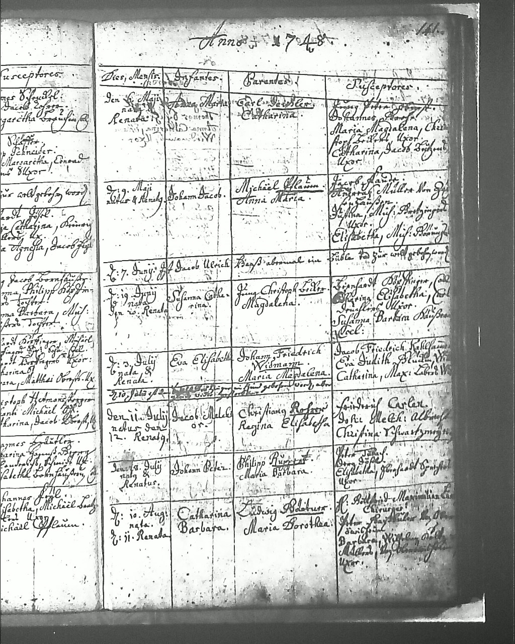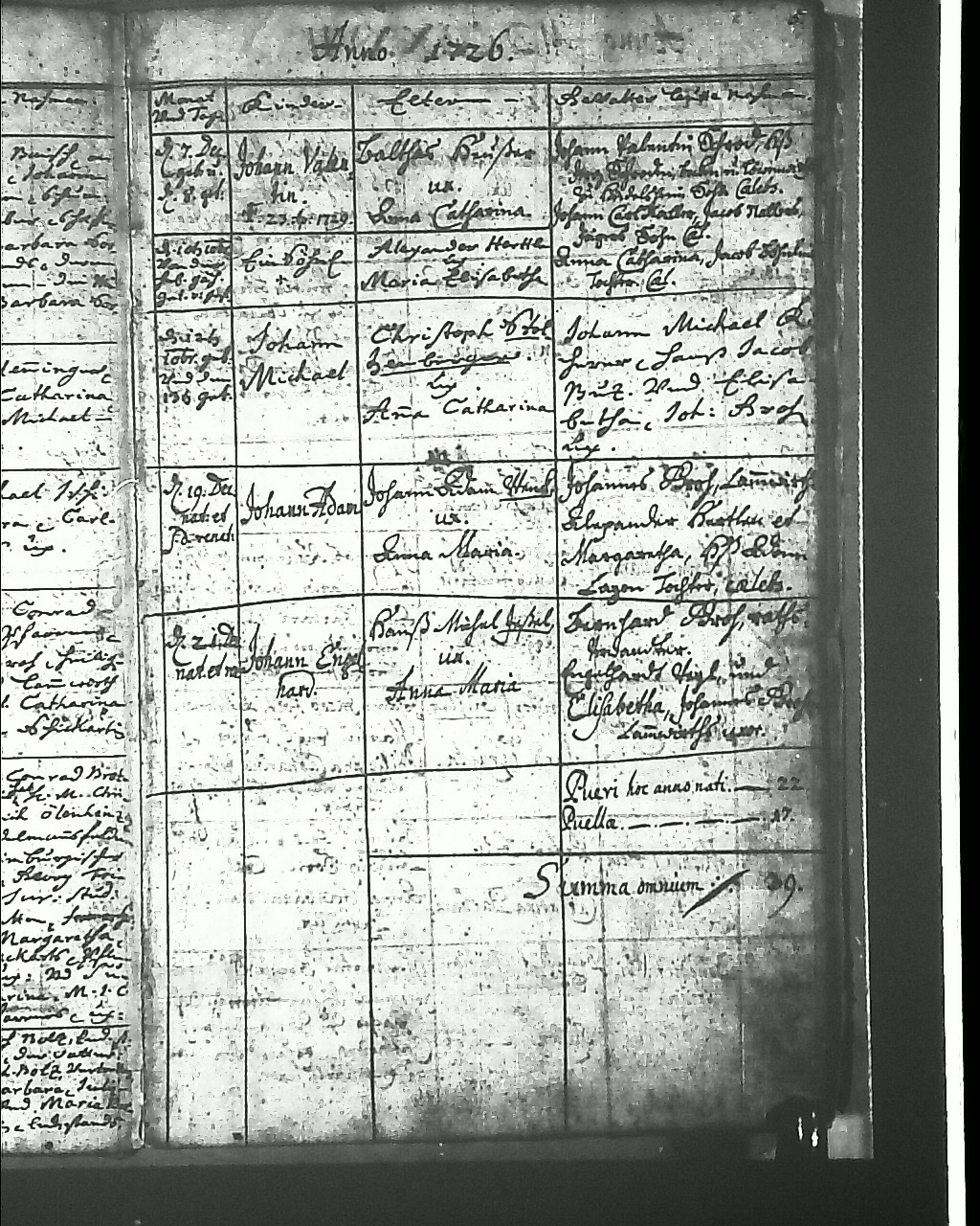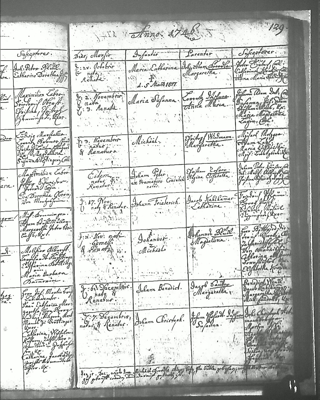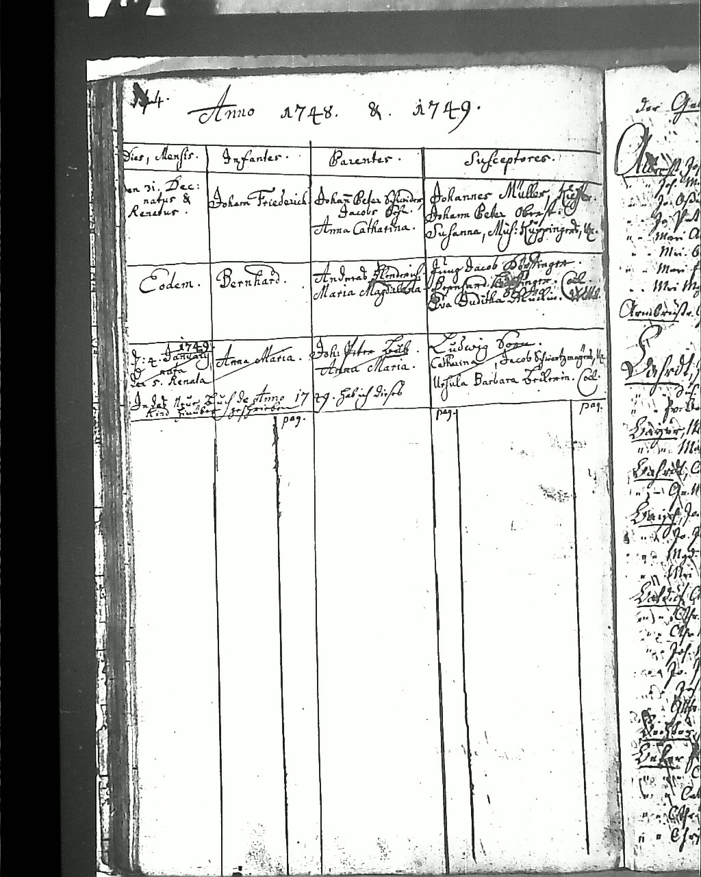 16 February; Christening: Maria Magualena; Parents: Sebastain Gindar Boltz; Anna Maria; sponsors: 3