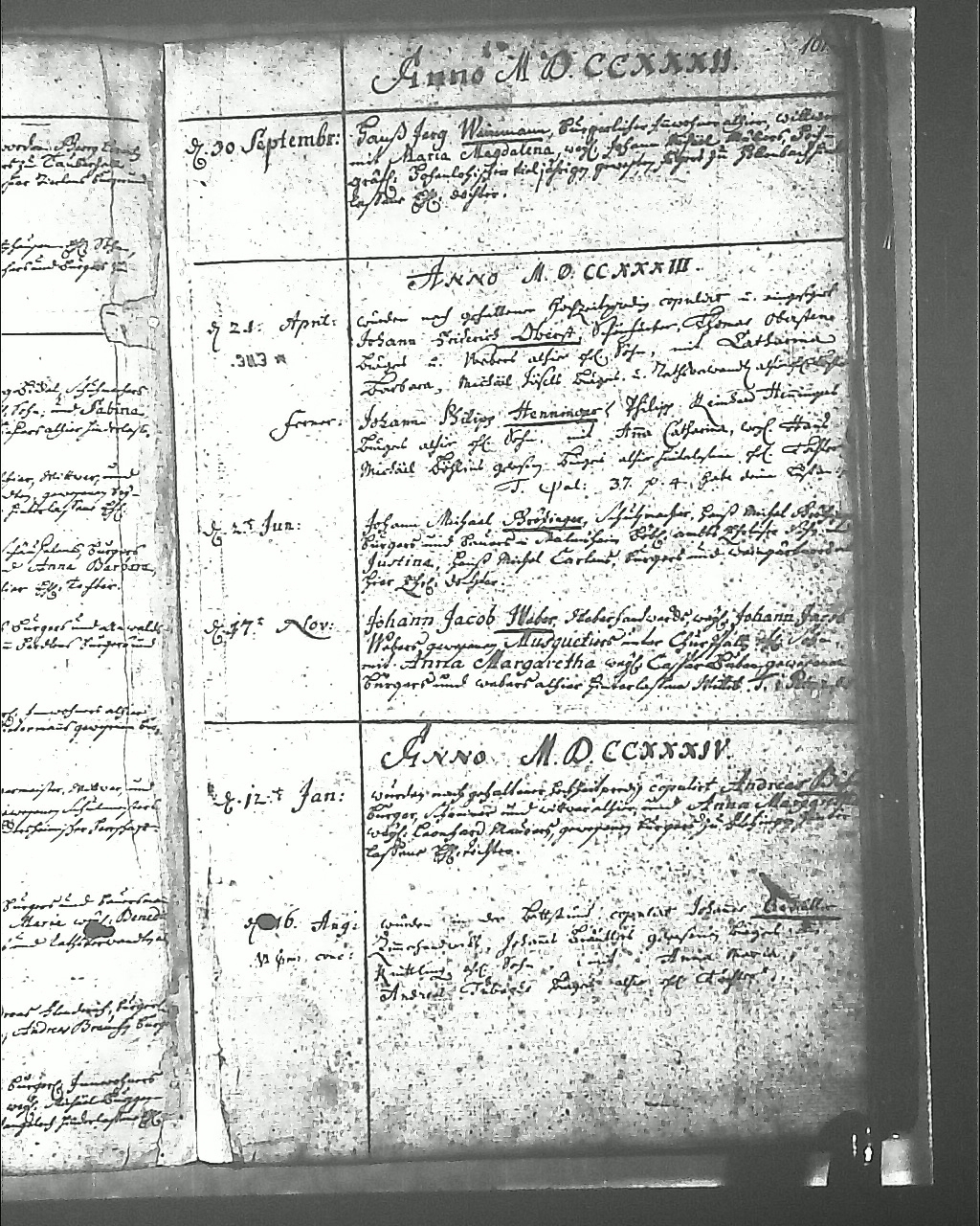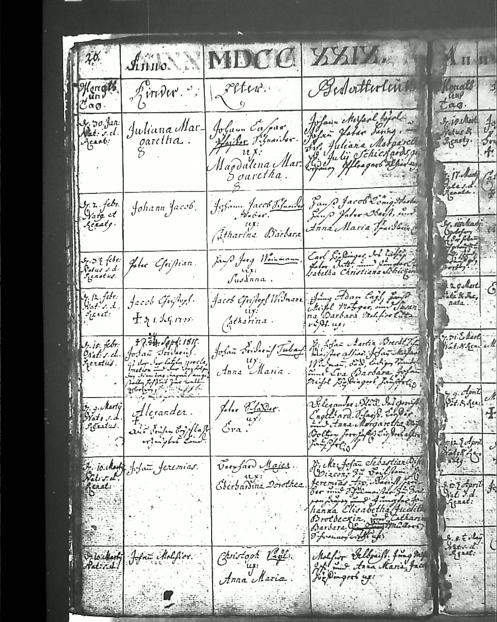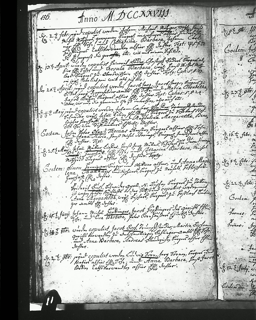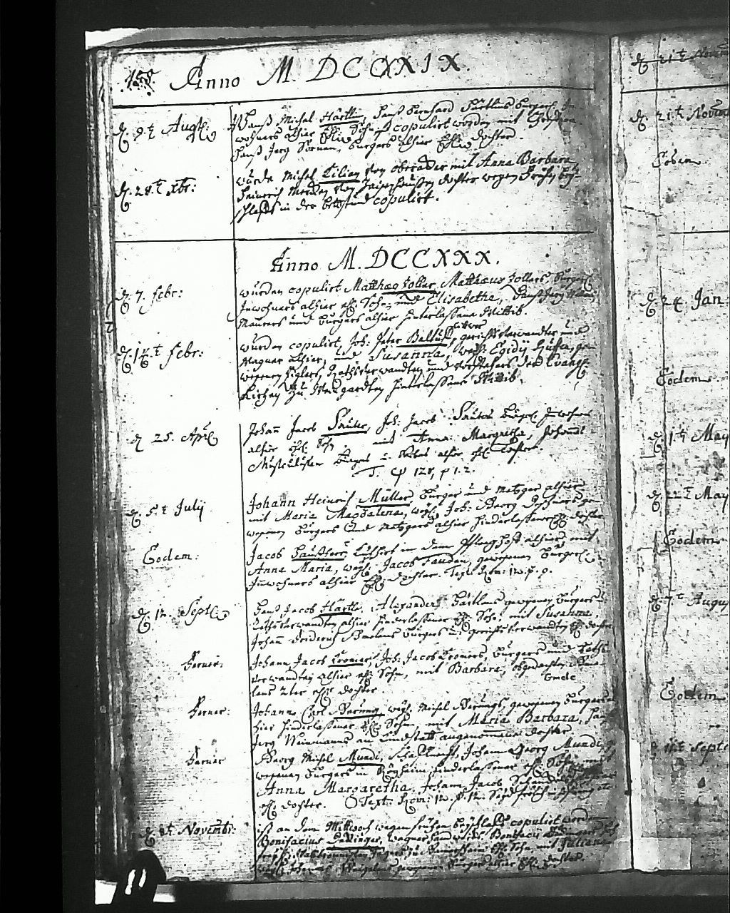 15 Fbr 1735 - cod - Jacob Boltz & Anna Margaretna very faint needs work
