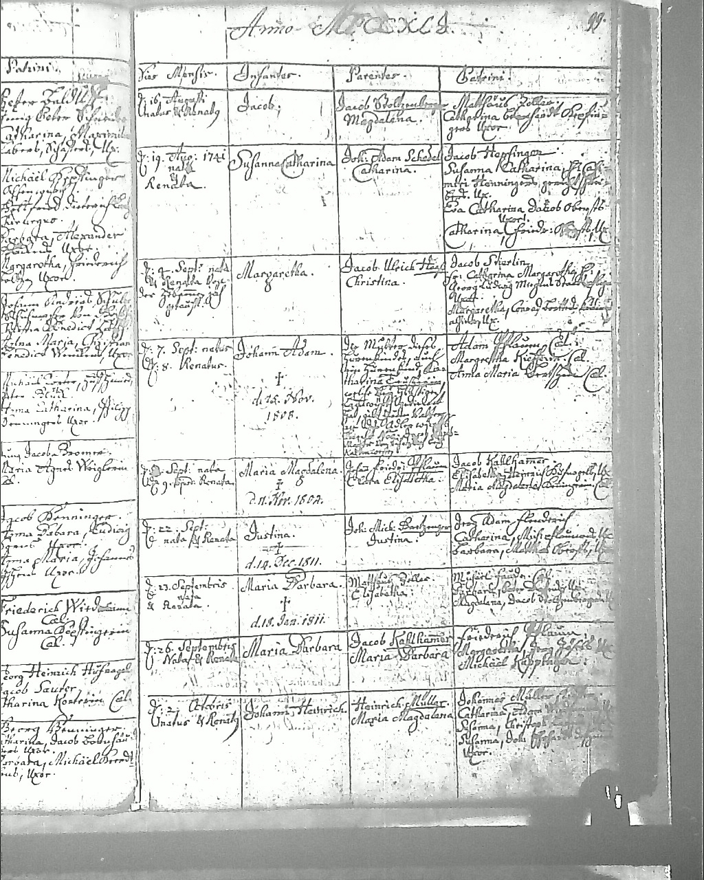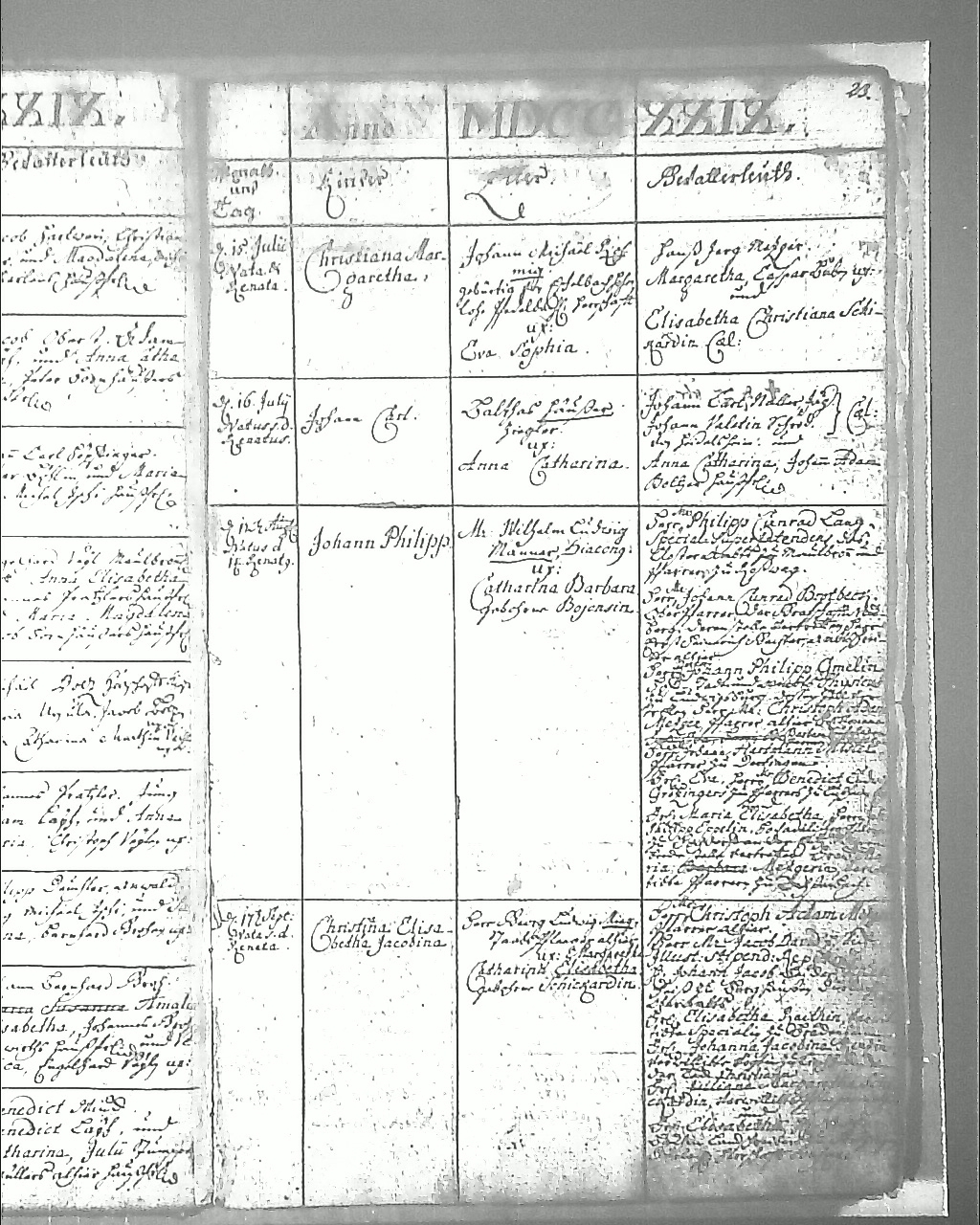 big change in handwriting more rushed - changed between July 1737 and September 1737, wonder if the minister came to America with the family?